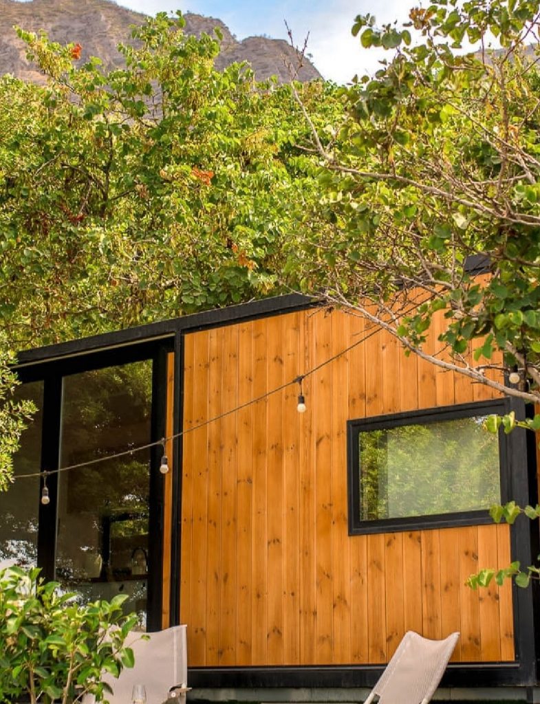 In Zusammenarbeit mit der griechischen Manufaktur CONTY lassen wir ein maßgeschneidertes Tiny House (Modell 18.6) fertigen, das sich harmonisch in unsere Terrassenlandschaft einfügt.