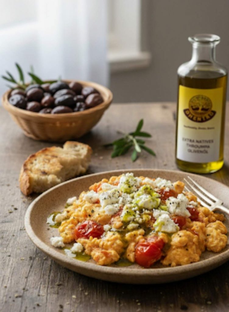 Du kannst das Öl der frühen Ernte auch erhitzen. Probiere doch einmal ein Griechisches Omelett (Strapatsada)! Der Clou: Beträufle das fertige Omelett mit einem weiteren Schuss kaltem Öl! Dieser zweite, frische Schuss intensiviert das fruchtige Aroma und liefert Dir die maximale Polyphenol-Power.